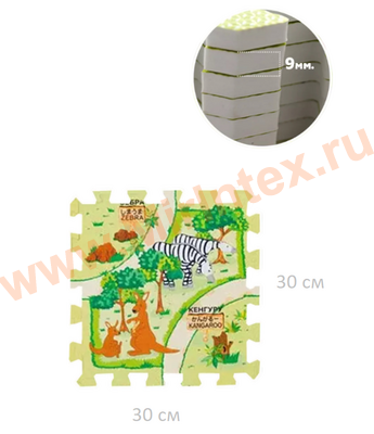Детский коврик-пазл "Зоопарк" (9 шт. 30х30 см)