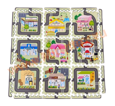 Детский коврик-пазл "Магазины, улицы" (9 шт. 30х30х1 см)