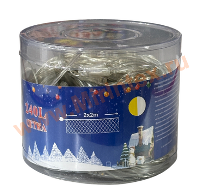 Светодиодная гирлянда сетка на окно 2х2 м, желтая, теплая