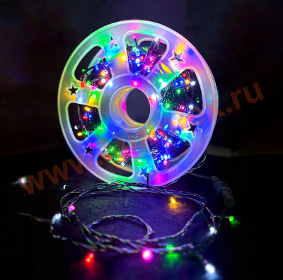 Гирлянда уличная 50 м, светодиодная нить на катушке, цветная с мерцанием, IP44