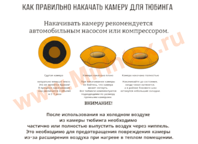 Размер камеры в спущенном состоянии значительно меньше (примерно в 2-3 раза) размеров самой ватрушки.