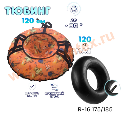 Диаметр тюбинга составляет 120 см, что позволяет комфортно разместиться ребенку и наслаждаться катанием.