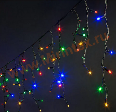 Гирлянда бахрома уличная 3 м, цветная с мерцанием, IP44, черный провод