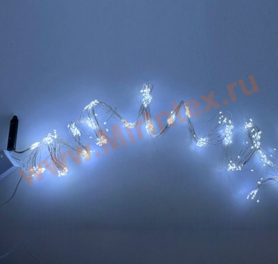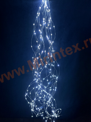 Пучок на елку состоит из 20 связанных тонких гибких нитей с последовательно расположенными диодами, расстояние между ними 10 см, длина нитей 2.95 м, плотно заполненные огнями, создают волшебную атмосферу и производят яркое впечатление на ваших гостей.