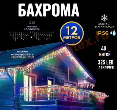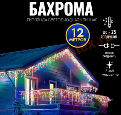 Уличная гирлянда Бахрома 12 м, разноцветная с Flash мерцанием