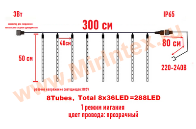 Гирлянда сосулька 300х50 см, (8 ламп), белый холодный