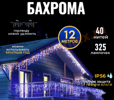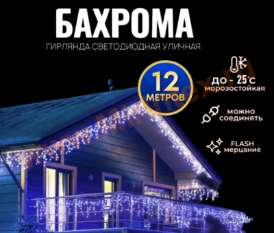 Новогодняя гирлянда бахрома 12 метров идеальна для украшения крыши.