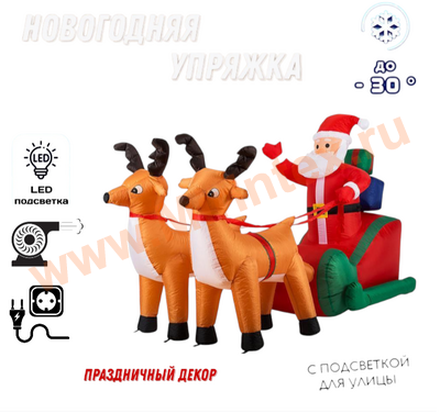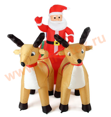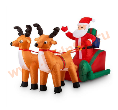 Надувная фигура, новогодняя упряжка с оленями 240 см, Led подсветка