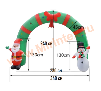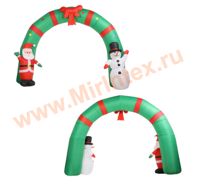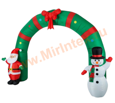 Фигура выполнена в стиле новогоднего декора с надувным снеговиком и дед морозом, арку украшает новогодний бант, что делает ее прекрасным дополнением к праздничной атмосфере (фигуры не съемные)