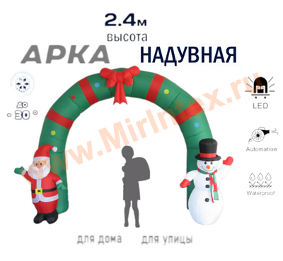 Надувная Фигура светодиодная «Арка Новогодняя 240 см» – это уникальное новогоднее украшение, которое добавит волшебства и сказочности в любое торжество.