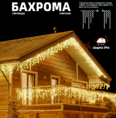 Гирлянда световая бахрома создаст праздничную атмосферу во дворе и на даче.