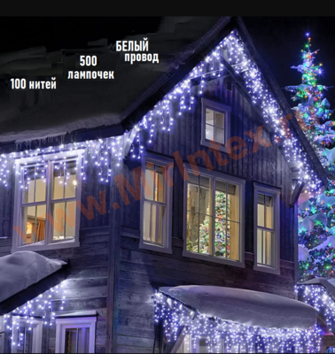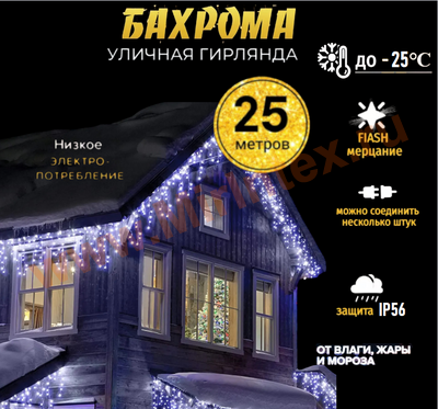 Новогодняя гирлянда уличная бахрома 25 метров идеальна для украшения крыши, козырьков,