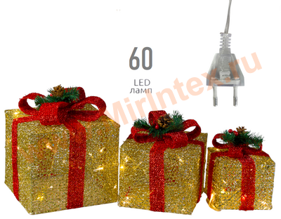 Все 3 подарка имеют 1 соединение гирляндой и используются как новогодняя композиция, разъединить подарки по 1 шт.- не получится.