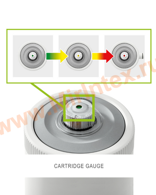 Индикатор уровня заполнения картриджа меняет цвет с зелёного на жёлтый и красный, чтобы вы знали, когда нужно заменить фильтр.