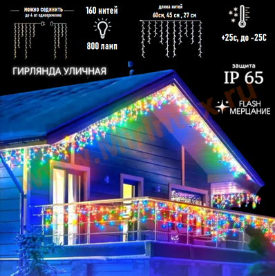 Высокое качество долговечной гирлянды и яркое мерцание светодиодов делают ее идеальным новогодним декором для улицы и дома.