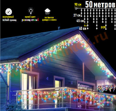 Уличная гирлянда бахрома 50 метров идеальна для украшения крыши, козырьков.