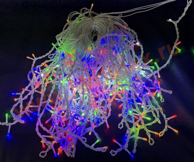 Для максимальной длины каучуковых нитей, необходимо распутать (раскрутить) свисающие нити светодиодной гирлянды.