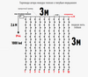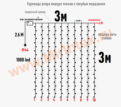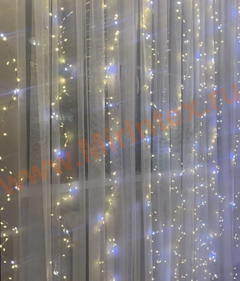 Ширина гирлянды: 3м, высота нитей 3м.