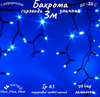Гирлянда бахрома уличная 3м, синяя с мерцанием, черный каучук IP65