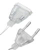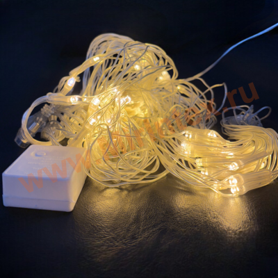 На одном конце электро - гирлянды находится сетевая вилка 220В, на другом коннектор для соединения с аналогичными гирляндами в одну цепочку, соединить можно до 4 шт., одновременно.