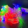 На одном конце электро - гирлянды находится сетевая вилка 220В, на другом коннектор для соединения с аналогичными гирляндами в одну цепочку, соединить можно до 4 шт., одновременно.