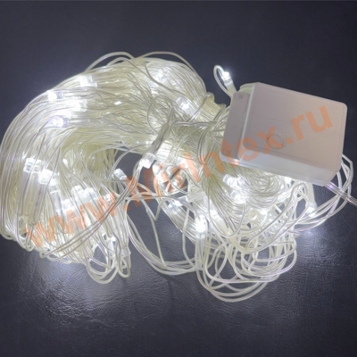 На одном конце электро - гирлянды находится сетевая вилка 220В, на другом коннектор для соединения с аналогичными гирляндами в одну цепочку, соединить можно до 4 шт., одновременно.
