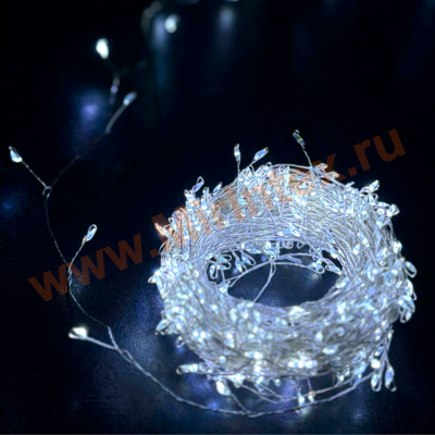 Уникальность данной гирлянды в том, что ее легкие нити практически не заметны на предмете, создается ощущение, что огоньки зависли в воздухе.