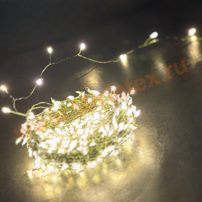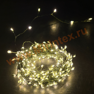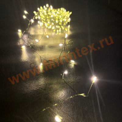 Уникальность данной гирлянды в том, что ее легкие нити практически не заметны на предмете, создается ощущение, что огоньки зависли в воздухе.