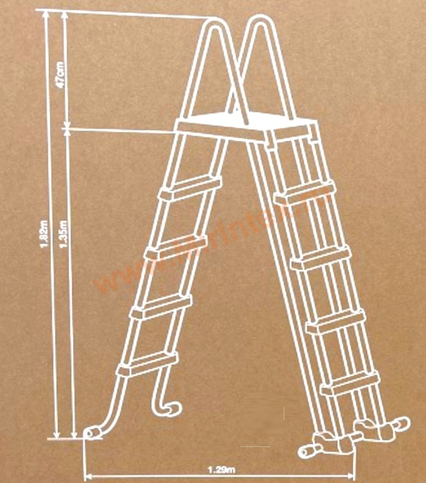 Лестница для бассейна предназначена для наземных бассейнов с высотой стенок 132 см.